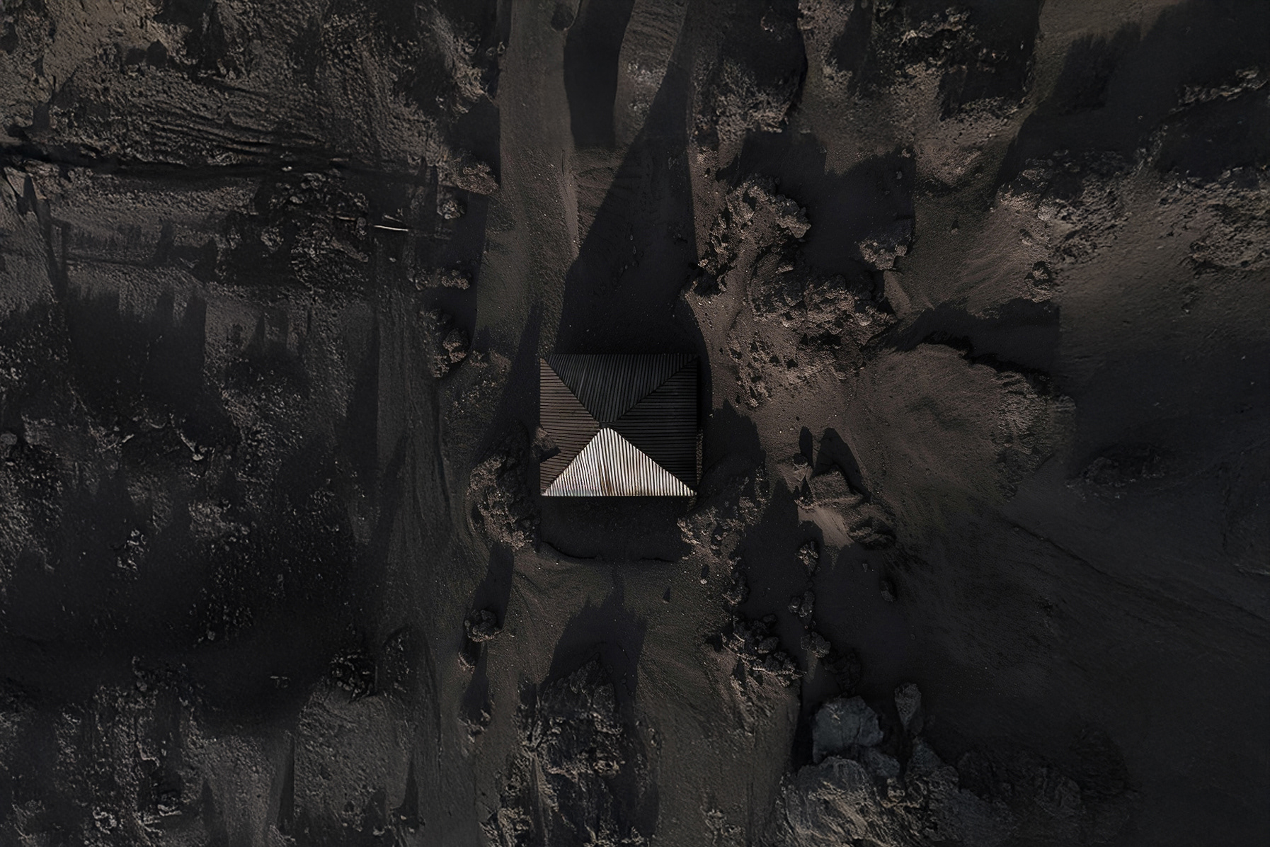 Avant l'ascension menant au Piton de La Fournaise, un kiosque s’intègre harmonieusement dans le paysage minéral et basaltique de l’enclos. Au milieu de ce terrain accidenté, l’abri offre à la fois protection et réconfort aux randonneurs perdus et aux scientifiques de l’observatoire volcanologique. Le bois brûlé témoigne de sa fragilité et rappelle la menace constante d'une éruption. A la fois symbole d’espoir et refuge temporaire, le kiosque reste vulnérable face aux forces de la nature. Loris Gazut © - - - At the foot of Piton de La Fournaise, a kiosk seamlessly integrates into the mineral and basaltic landscape of the enclosure. Amidst this rugged terrain, the shelter provides both protection and comfort to lost hikers and scientists from the volcano observatory. The burned wood attests to its fragility and recalls the threat of an eruption. As both a symbol of hope and a temporary refuge, the kiosk remains vulnerable to the forces of nature. Loris Gazut ©